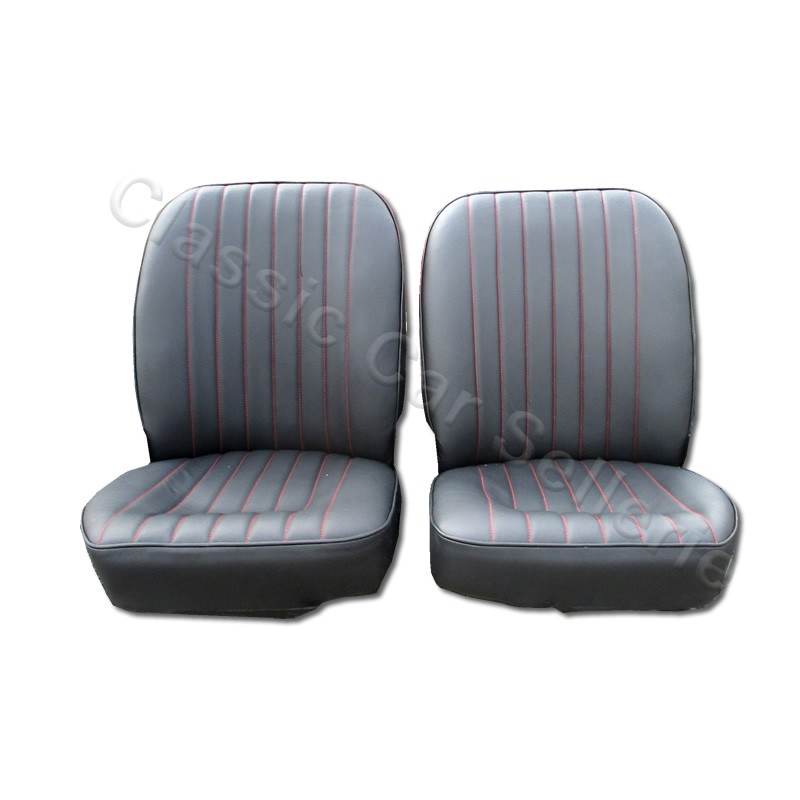 ensemble 2 garniture de sièges avant sans appuis tête jaguar type E en cuir noir serie1  1968 6 cylindres
