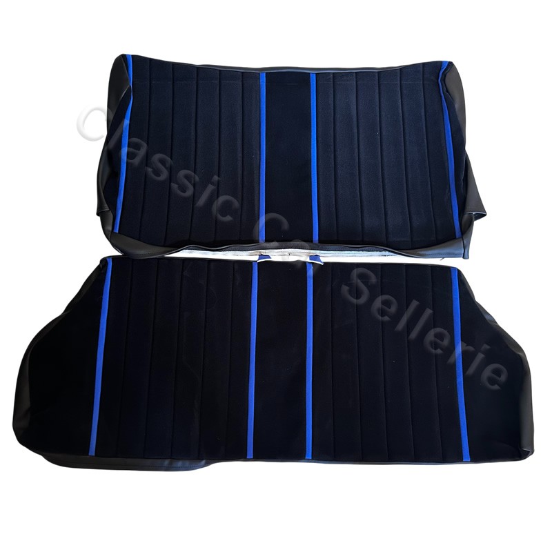 ensemble comprenant les deux garnitures de sièges avant et la banquette arrière en tissu côtelé noir (filet bleu) peugeot 104ZS